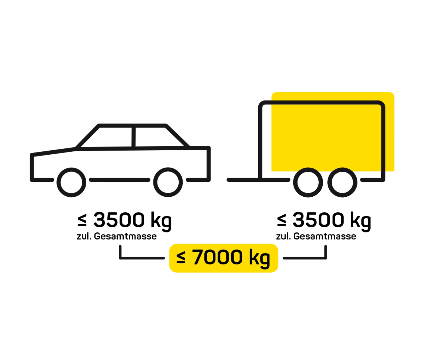 Die zulässige Gesamtmasse der Fahrzeugkombination kann somit bis zu 7 t erreichen (3,5 t Zugfahrzeug + 3,5 t Anhänger).
